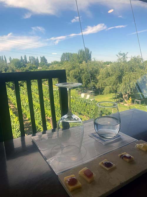 La experiencia de aprender sobre maridajes se vuelve amena en medio de los viñedos y vistas de Bodega Bonfanti.
